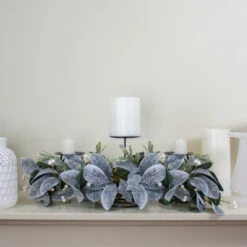 Northlight 32″ Iced Leaves And Winter Berries Artificial Christmas Pillar Candle Holder