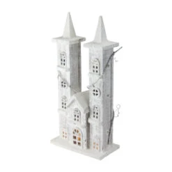 Northlight 15.75″ White Pre-Lit LED Snowy Double Tower Church Christmas Decor