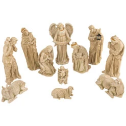 Northlight 13-Piece Gray Traditional Religious Christmas Nativity Figurine With Stable 23.25″