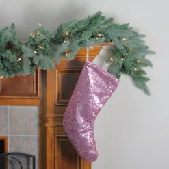 Northlight 17.5″ Pink And White Shiny Sequins Hanging Christmas Stocking