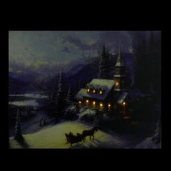 Northlight LED Lighted Santa Claus With Reindeer Christmas Canvas Wall Art 11.75″ X 15.75″