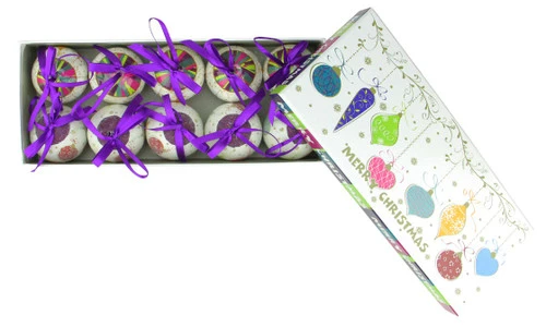 - 10Ct Purple And White Decoupage Christmas Ball Ornaments