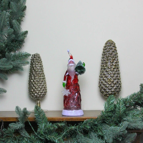 - Features Santa Holding A Small Christmas Tree And Snowflake, All Accentuated With Iridescent Glitter