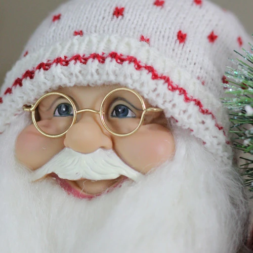 - Red And White Santa In Knit Deer Sweater Christmas Figurine