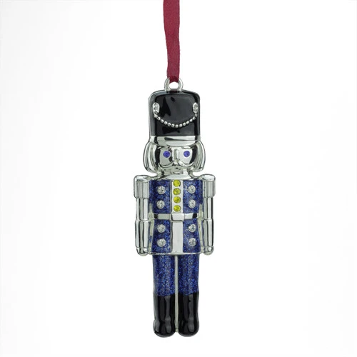- Silver And Blue Nutcracker Ornament With European Crystals