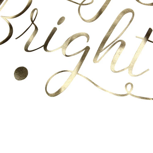 - Features a gold Merry and Bright cursive print