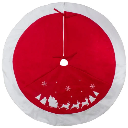 - Features Santa Claus sleigh being pulled by three reindeer with snowflakes and forest trees