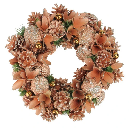 - Featuring Glittered Cones And Autumn Foliage In A Rose Gold Color