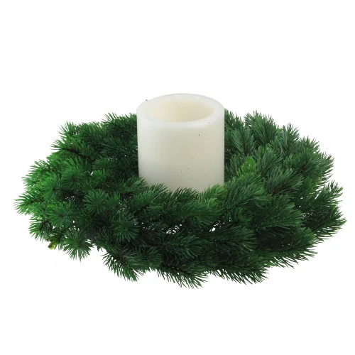 Traditional artificial green pine wreath is ready for your own bows or other embellishments