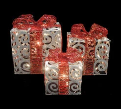 Northlight Set Of 3 Red And White Striped Gift Box Outdoor Christmas Decor
