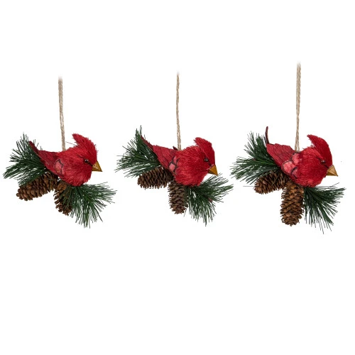 - Cardinal bird on pine sprig ornaments