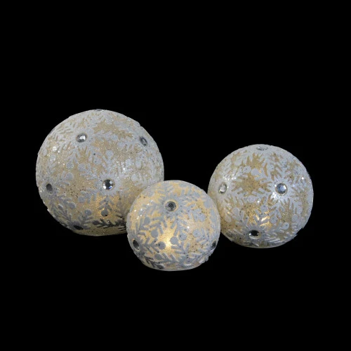 Northlight Set Of 3 White And Silver Battery Operated Lighted LED Snowflake Christmas Ball Decors 6″