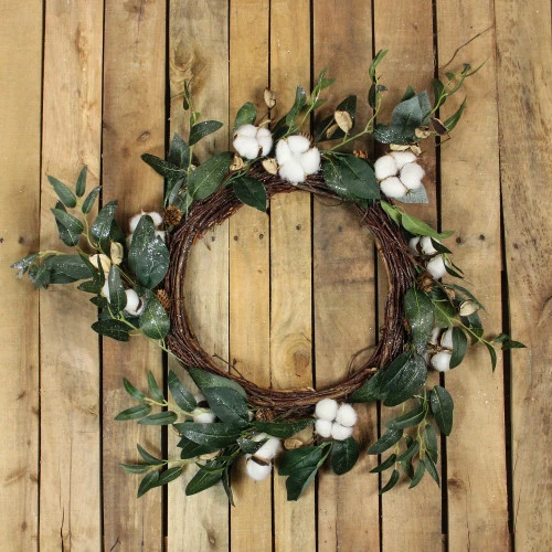 - Cotton Flowers And Leaves Artificial Spring Wreath