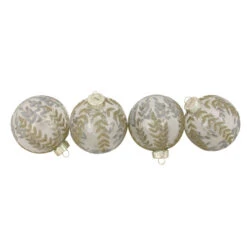 Northlight 4ct Clear And Gold Leaf Design Christmas Ball Ornaments 3.25″ (80mm)