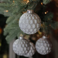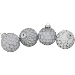 Northlight 4ct White And Silver Honeycomb Matte Glass Christmas Ball Ornaments 3.25″ (83mm)