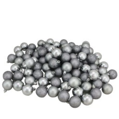 Northlight 96ct Pewter Gray Shatterproof 4-Finish Christmas Ball Ornaments 1.5″ (35mm)
