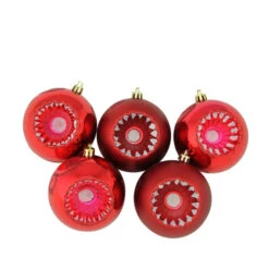 Northlight 5ct Red Retro Reflector Shatterproof 2-Finish Christmas Ball Ornaments 3.25″ (80mm)