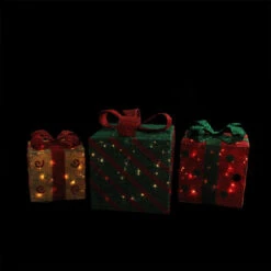 Northlight 3-Piece Glistening Striped Gift Box Lighted Christmas Outdoor Decoration – 32913133