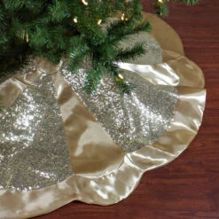 Northlight 48″ Golden Sequined Scalloped Christmas Tree Skirt With Gold Sateen Trim