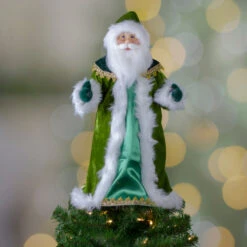 Northlight 18″ Green And White Irish Christmas Santa Claus Tree Topper – Unlit