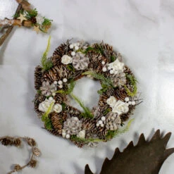 Northlight White Driftwood And Pine Cone Artificial Christmas Wreath – 13-Inch Unlit
