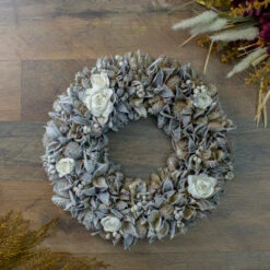 Northlight White Glittered Rose And Walnut Shell Artificial Christmas Wreath – 19-Inch, Unlit
