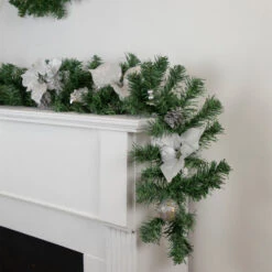 Northlight 6′ X 9″ Silver Poinsettia And Pinecone Artificial Christmas Garland, Unlit