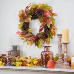 Northlight Leaves, Pinecones And Berries Artificial Fall Harvest Wreath, 24-Inch, Unlit