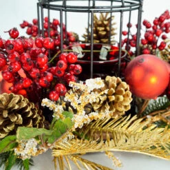 Northlight 19″ Red And Green Berry With Pine Cone Birdcage Christmas Pillar Candle Holder